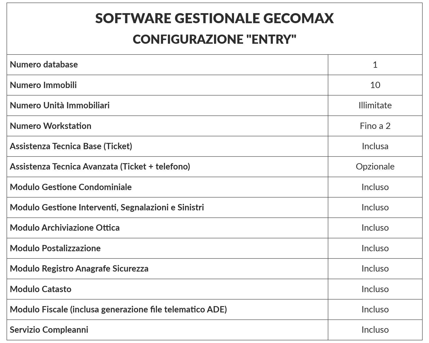 Il valore di mercato della configurazione GeCoMAX Entry è di € 440,00 per il canone annuo e € 100,00 per la licenza. Per gli Associati in regola con la quota associativa il costo è a carico di ANAPI e viene offerto tra i benefit della quota associativa.